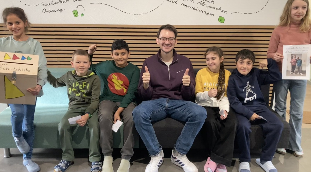Die Kinder des Kinderparlaments waren ganz gespannt, ob er sein Okay geben wird. Herr Albers lachte und stimmte direkt zu. „Wie viel wiegt eigentlich Herr Albers?“ Das Parlament wollte den Kindern noch einen Vergleich geben. Da durfte dann Herr Sathgunam herhalten.